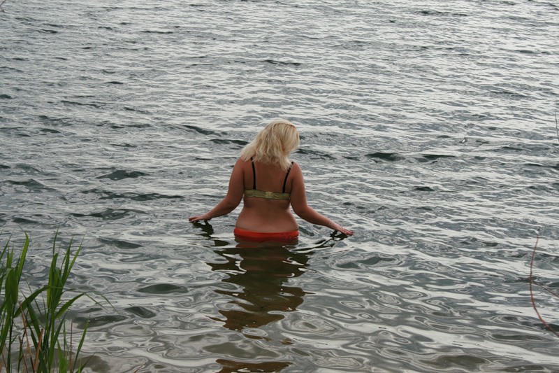 Милашка, холодно же еще, рано ты в заплыв ))