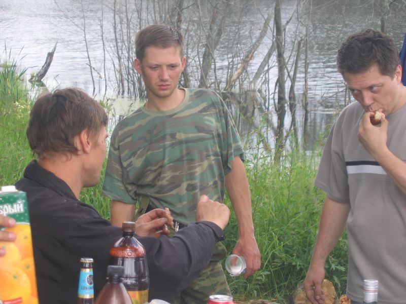 Тусовка. Гарик, измученный ночной рыбалкой и нарзаном.