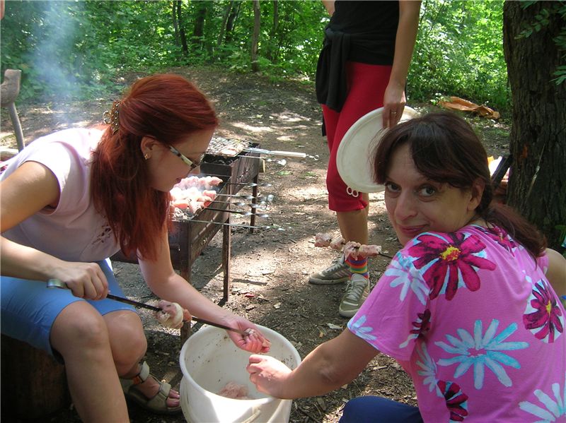 так и не попробовали шашлыка, пока нанизывали новый, старый уже съедали...