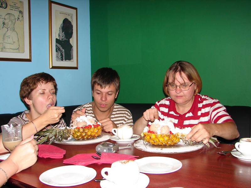 всякая вкуснятина - кусочки ананаса, клубника, мороженое, взбитые сливки