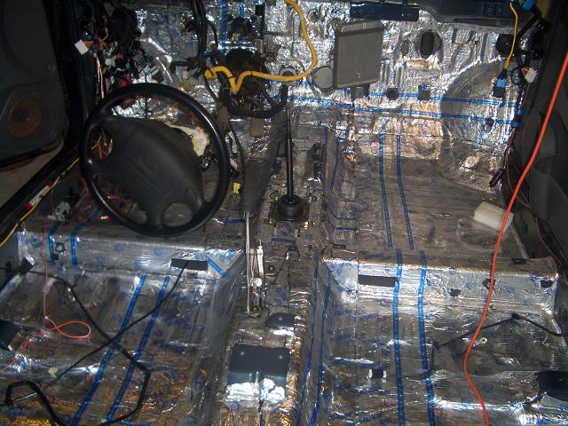 Хочу сказть, что это того стойило, в машине стало на 70-80% тише чем прежде, станет ещё тише к лету, у меня сейчас крыша и заднии арки не проклеины, слышно как они шумят:( ТАк же слышно как потрескивает обшивка потолка, саб делает своё дело:)