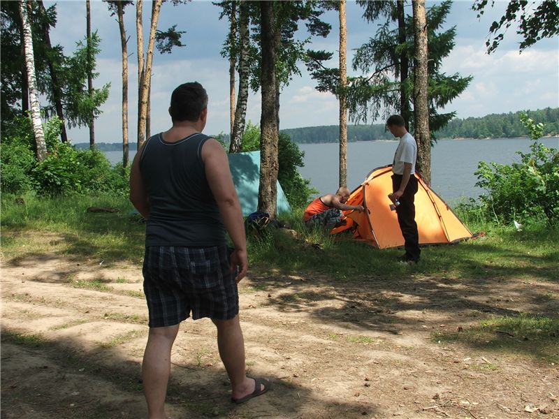 Разбиваем лагерь (Толя, Женя и Илья)