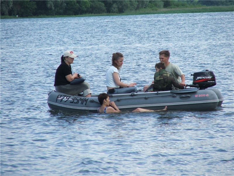 Гарик катает деффченок на лодке с моторчиком